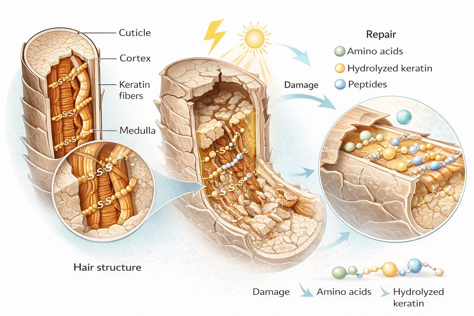 Вони можуть зв’язуватися з пошкодженими ділянками кератину та тимчасово їх відновлювати