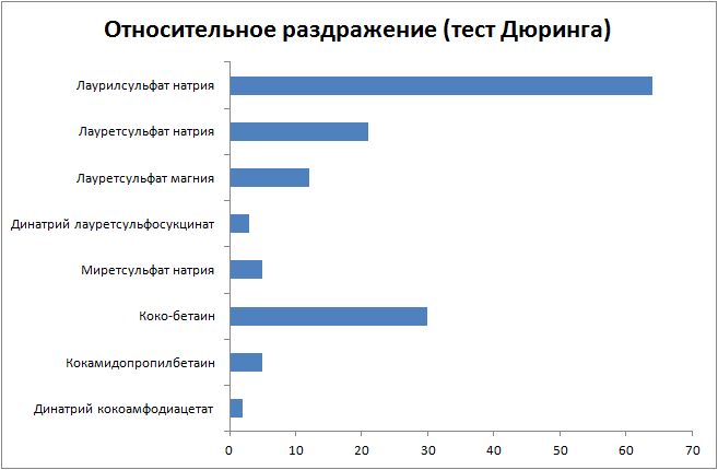 * Відносна подразнююча дія деяких ПАР різних класів (за матеріалами концерну BASF)