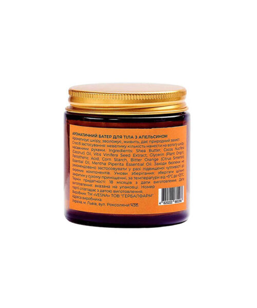 Його густа, кремова текстура тане під дотиком, легко розподіляється по тілу та створює на шкірі ніжну захисну вуаль, яка допомагає утримувати вологу протягом усього дня. Завдяки поєднанню природних масел батер відновлює навіть дуже сухі ділянки, даруючи відчуття комфорту та зволоження.