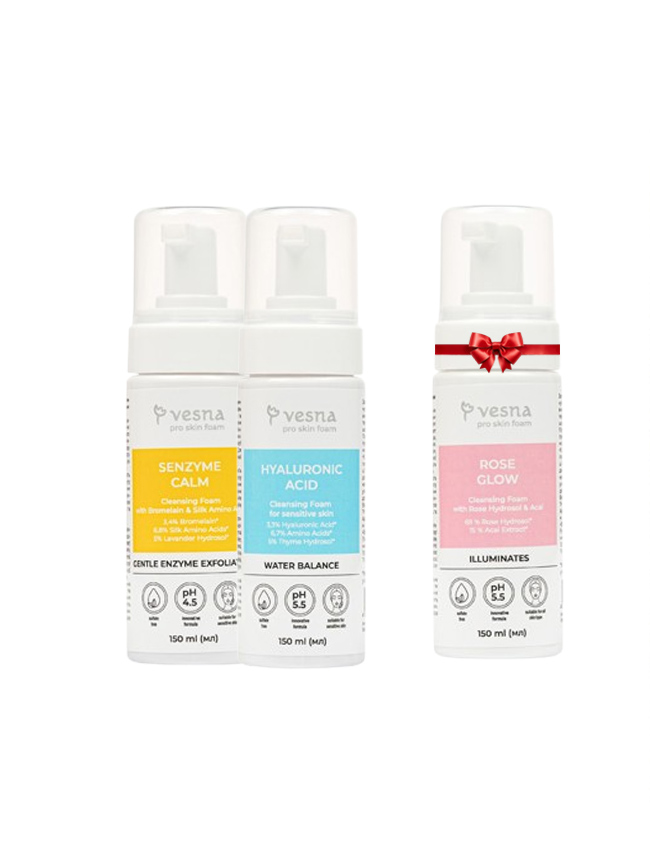 У набір входять три очищувальні пінки vesna.pro, створені для різних потреб шкіри.