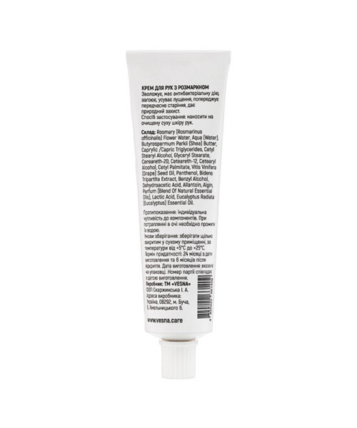 Наш крем ефективно зволожує, пом’якшує та живить шкіру рук, залишаючи її оксамитовою і природно здоровою. Аромат ефірної олії ветиверу додає нотку розслаблення та комфорту.