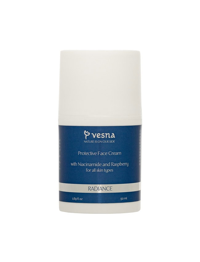 Захисний крем для обличчя з малиною та ніацинамідом захищає, відновлює шкіру, надає їй пружності та сяяння. Бореться з зовнішніми каталізаторами старіння. Захищає від різких перепадів температури, вітру, холоду.